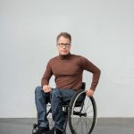 Byxa i snygg och skön denim för dig som sitter i rullstol. Fickorna är placerade under knät där du kan ha din plånbok eller mobil. Den här modellen har blixtlås ända ner till grenen samt extra häller runt linningen för att underlätta av och påklädning.