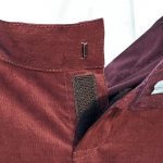 En härlig vinröd byxa med ficka under knät. Den snygga smalrandiga manchestern gör den väldigt mjuk och den sitter bra. Gylfen har kardborre och en hake istället för blixtlås det är för att de ska vara lätta att öppna samtidigt som de inte klämmer fram på magen. I fickorna kan du till exempel ha din mobil eller annat som du vill ha nära och lättillgängligt.