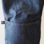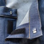 En härlig blå denim byxa med ficka under knät i mjukt och skönt tyg sig som gör att den sitter bra. Gylfen har kardborre och en hake istället för blixtlås det är för att de ska vara lätta att öppna samtidigt som de inte klämmer fram på magen. I fickorna kan du till exempel ha din plånbok eller mobil.